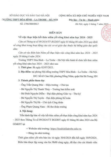 Biên bản: Về việc thực hiện kết thúc niêm yết công khai năm học 2024 -2025