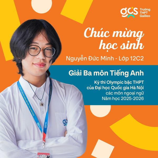 Trong số 3 đại diện của THPT Galileo tham gia kỳ thi Olympic các môn Ngoại ngữ bậc THPT năm học 2025-2026 do Đại học Quốc Gia tổ chức vừa qua, học sinh Nguyễn Đức Minh – lớp 12C2 đã xuất sắc đạt giải Ba môn tiếng Anh. Đây là một sân chơi học thuật uy tín, trí tuệ và giàu ý nghĩa dành cho học sinh yêu thích ngoại ngữ trên toàn quốc.