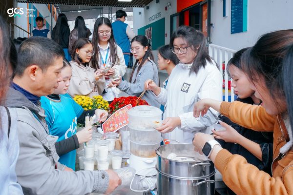 Các gian hàng ẩm thực do chính học sinh tổ chức đã tái hiện sinh động không khí của một phiên chợ xuân. Từ những món ăn mang đậm hồn Việt như nem rán, phở cuốn… đến các món ăn như dimsum, tokbokki hay dâu tây chocolate,… mỗi gian hàng là một sản phẩm của sự sáng tạo, tinh thần chủ động và khả năng làm việc nhóm của GStars.