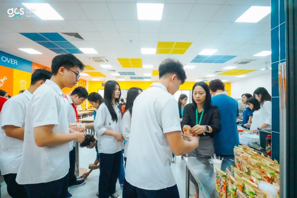 Bên cạnh những giờ học trải nghiệm, cuộc sống học đường tại Trường THPT Galileo còn hiện lên rõ nét trong chính những điều giản dị nhất. Đó là hình ảnh các bạn xếp hàng ngay ngắn, cùng nhau thưởng thức bữa ăn nhẹ và chủ động dọn dẹp không gian của mình sau khi sử dụng. Chính những thói quen nhỏ ấy đã tạo nên một môi trường mà ở đó, học sinh được rèn luyện mỗi ngày về tính tự giác, kỷ luật và sự tôn trọng cộng đồng.